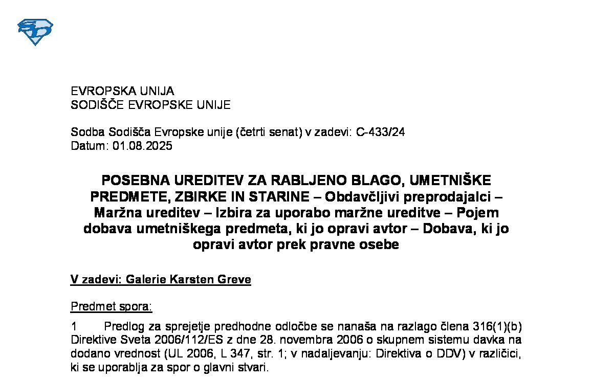 OPROSTITEV V ZVEZI Z DAJANJEM KREDITOV – OPROSTITEV V ZVEZI S FINANČNIMI TRANSAKCIJAMI – IZTERJAVA DOLGOV – Faktoring s prodajo terjatev – Faktoring z zastavno pravico (C-332/24) 23.10.2025 28.10.2025