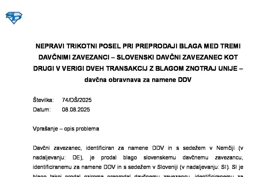 SLOVENSKI DAVČNI ZAVEZANEC OPRAVI STORITEV SEČNJE DREVES (GOZDA) NA OZEMLJU SLOVENIJE HRVAŠKEMU DAVČNEMU ZAVEZANCU – Določitev kraja opravljanja storitev skladno z določili ZDDV-1 25.11.2025 25.11.2025