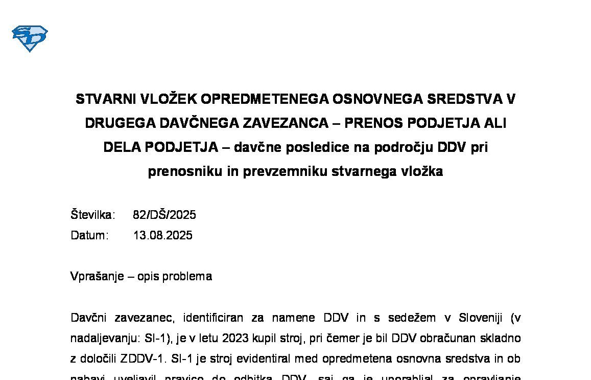 SLOVENSKI DAVČNI ZAVEZANEC OPRAVI STORITEV SEČNJE DREVES (GOZDA) NA OZEMLJU SLOVENIJE HRVAŠKEMU DAVČNEMU ZAVEZANCU – Določitev kraja opravljanja storitev skladno z določili ZDDV-1 25.11.2025 25.11.2025