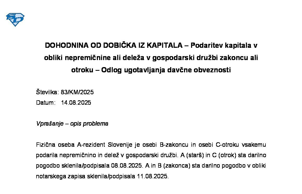 DOHODNINA IZ DEJAVNOSTI – Statusno preoblikovanje podjetnika s prenosom podjetja na novo kapitalsko družbo – Predložitev davčnega obračuna akontacije dohodnine od dohodka iz dejavnosti 17.11.2025 19.11.2025