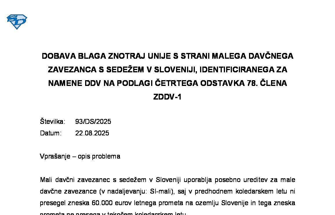 PRIDOBITEV IDENTIFIKACIJSKE ŠTEVILKE ZA DDV PRI MALEM DAVČNEM ZAVEZANCU – NAKUPI RABLJENEGA BLAGA OD OBDAVČLJIVIH PREPRODAJALCEV IZ DRUGIH DRŽAV ČLANIC EU – Ali preseganje nakupov v vrednosti 10.000 EUR pomeni obveznost za identifikacijo za DDV? 27.11.2025 27.11.2025