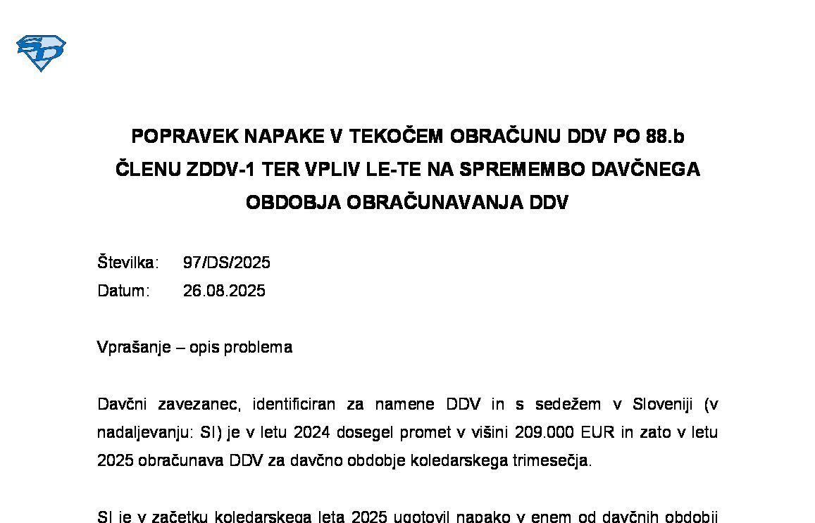 SLOVENSKI DAVČNI ZAVEZANEC OPRAVI STORITEV SEČNJE DREVES (GOZDA) NA OZEMLJU SLOVENIJE HRVAŠKEMU DAVČNEMU ZAVEZANCU – Določitev kraja opravljanja storitev skladno z določili ZDDV-1 25.11.2025 25.11.2025