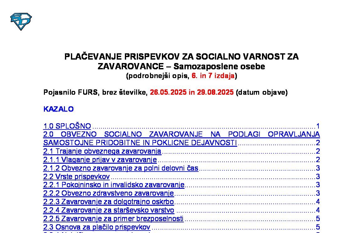 PRISPEVKI ZA SOCIALNO VARNOST – Brošura o plačevanju prispevkov za socialno varnost (podrobnejši opis, 12., 13. in 14. izdaja) 06.10.2025 06.10.2025