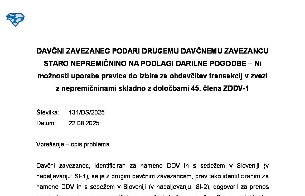 SLOVENSKI DAVČNI ZAVEZANEC OPRAVI STORITEV SEČNJE DREVES (GOZDA) NA OZEMLJU SLOVENIJE HRVAŠKEMU DAVČNEMU ZAVEZANCU – Določitev kraja opravljanja storitev skladno z določili ZDDV-1 25.11.2025 25.11.2025