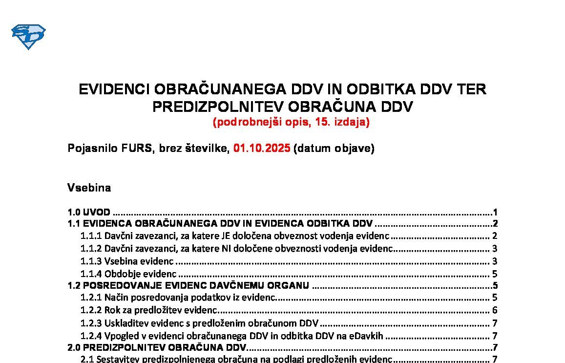 EVIDENCI OBRAČUNANEGA DDV IN ODBITKA DDV TER PREDIZPOLNITEV OBRAČUNA DDV (podrobnejši opis, 18. izdaja) 01.12.2025 01.12.2025