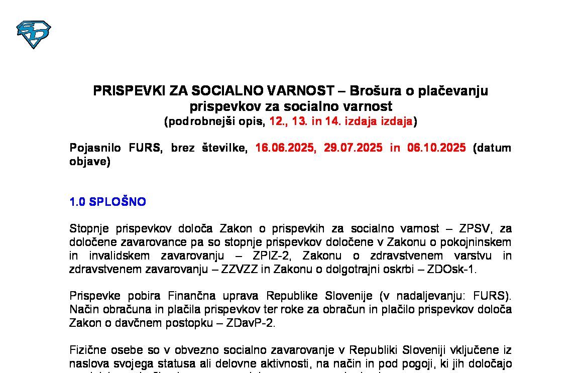 PLAČEVANJE PRISPEVKOV ZA SOCIALNO VARNOST ZA ZAVAROVANCE – Kmete (podrobnejši opis, 7. in 8. izdaja) 29.08.2025 05.09.2025