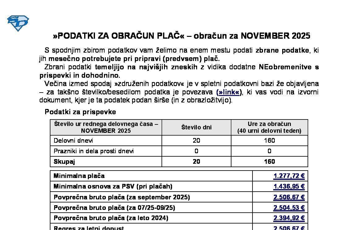 PODATKI ZA OBRAČUN PLAČ – obračun za OKTOBER 2025 22.10.2025