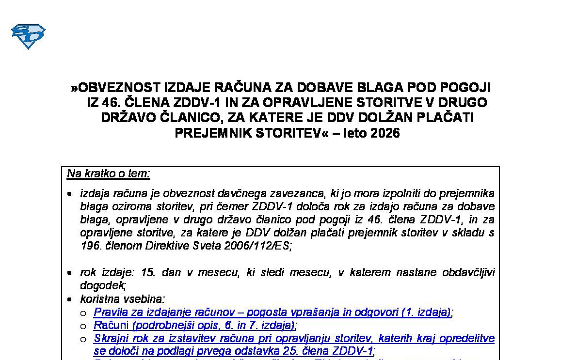 PREDLOŽITEV POROČILA O DOBAVI BLAGA ALI STORITEV PO 76.A ČLENU ZDDV-1 - leto 2026 04.12.2025