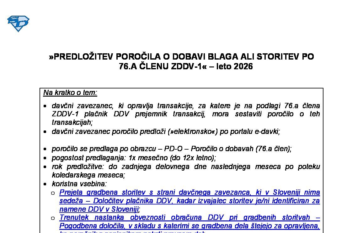 IZDAJA RAČUNA ZA TRANSAKCIJE ZNOTRAJ UNIJE - leto 2026 02.12.2025