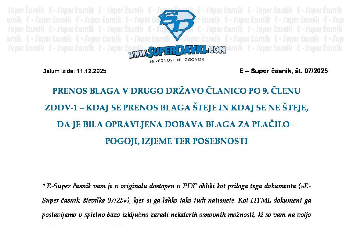 PRIDOBITEV BLAGA ZNOTRAJ UNIJE – DDV obravnava s praktičnimi primeri - številka 04/25 06.11.2025