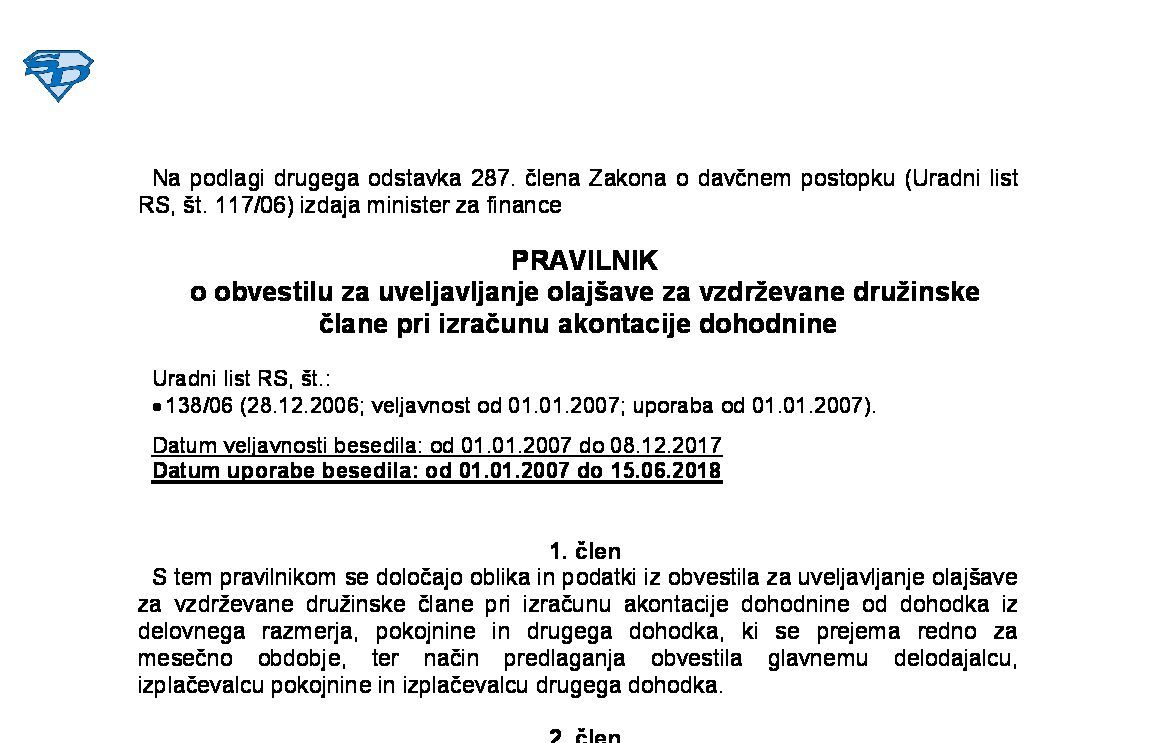 Članek nima posebnosti! Priloga - Obvestilo o uveljavljanju olajšave za vzdrževane družinske člane pri izračunu akontacije dohodnine.pdf