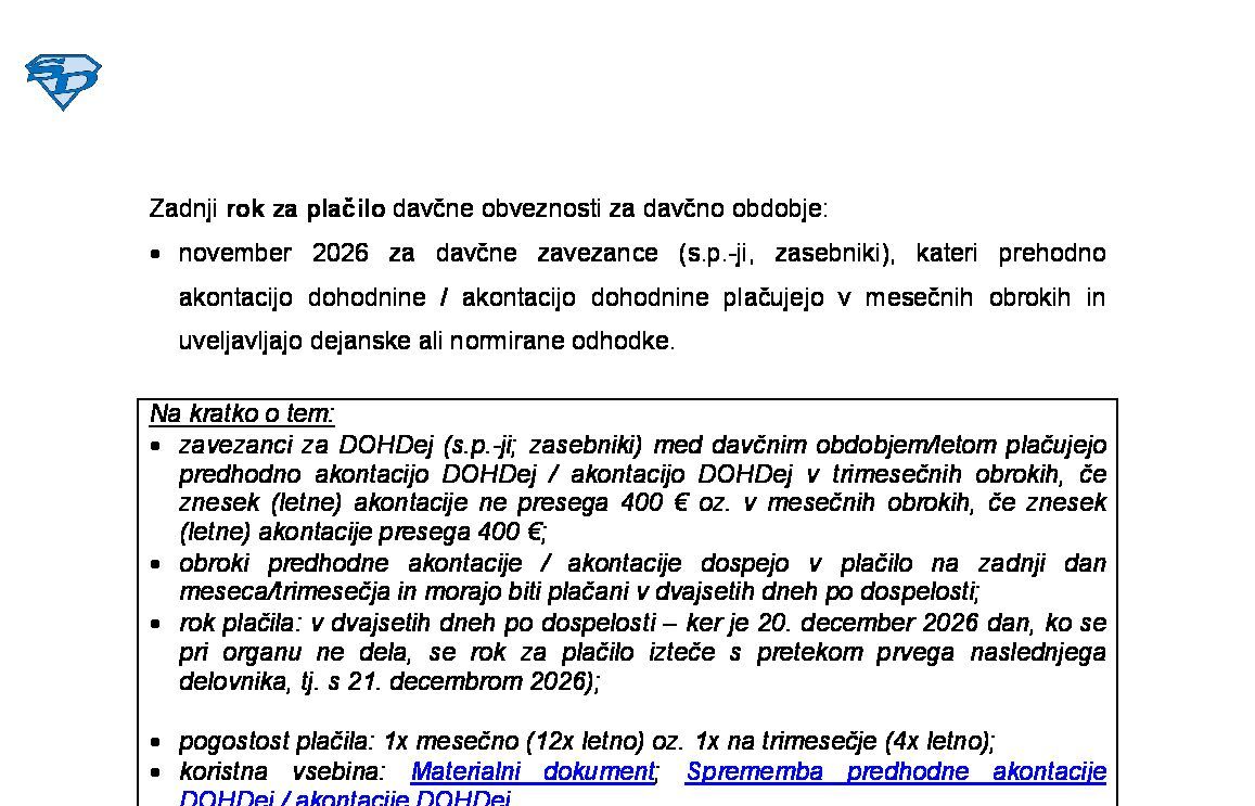 Sprememba predhodne AkDoh / AkDoh od dohodka iz dejavnosti za leto 2026 (obračun DOHDej) med davčnim letom 2026-08-03 00:00:00