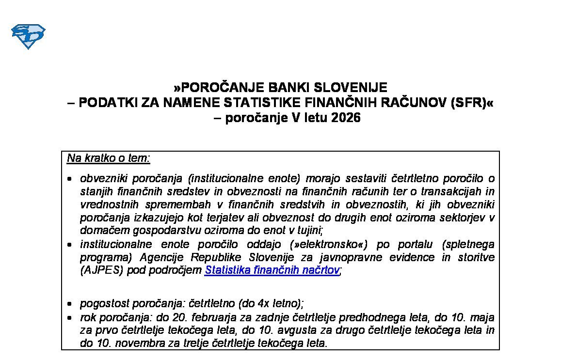 POROČANJE BANKI SLOVENIJE - POROČILO O POSLOVNIH TERJATVAH/OBVEZNOSTIH IN FINANČNIH NALOŽBAH/OBVEZNOSTIH DO NEREZIDENTOV (poročilo KRD) - poročanje v letu 2026 07.01.2026
