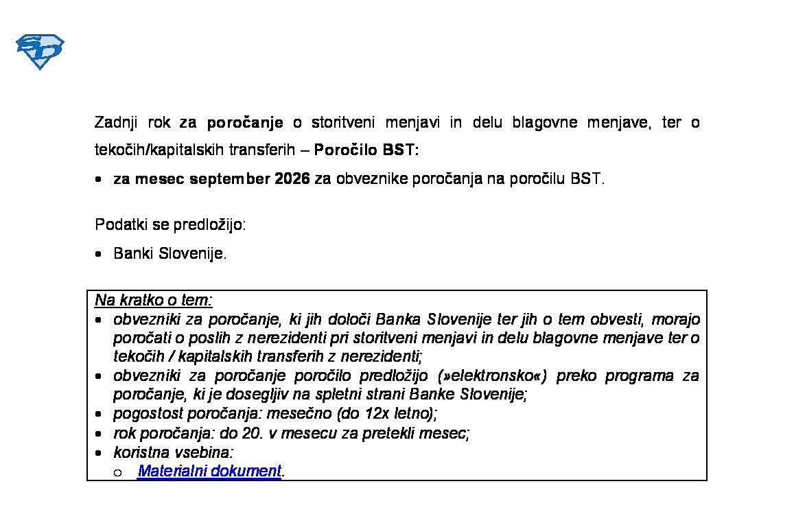 Poročanje Banki Slovenije - poročilo o prejetih in danih kreditih ter depozitih z nerezidenti - KRD 2026-09-20 00:00:00