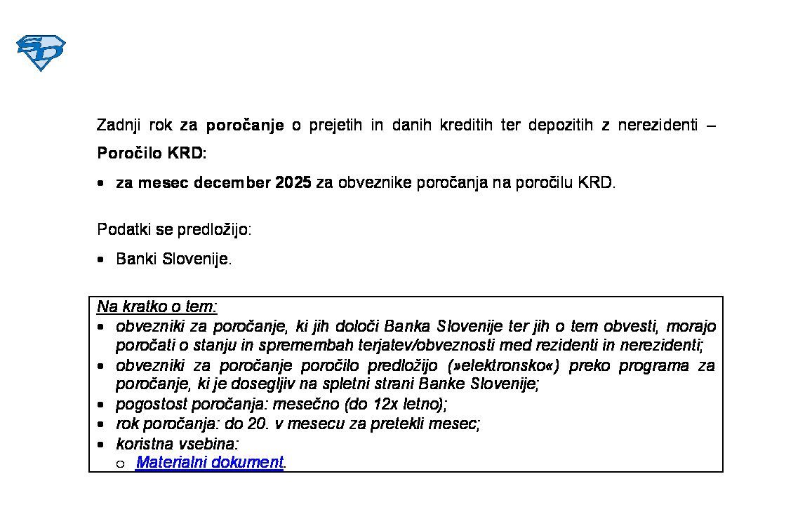 Poročanje Banki Slovenije - poročilo o prejetih in danih kreditih ter depozitih z nerezidenti - KRD 2026-12-20 00:00:00