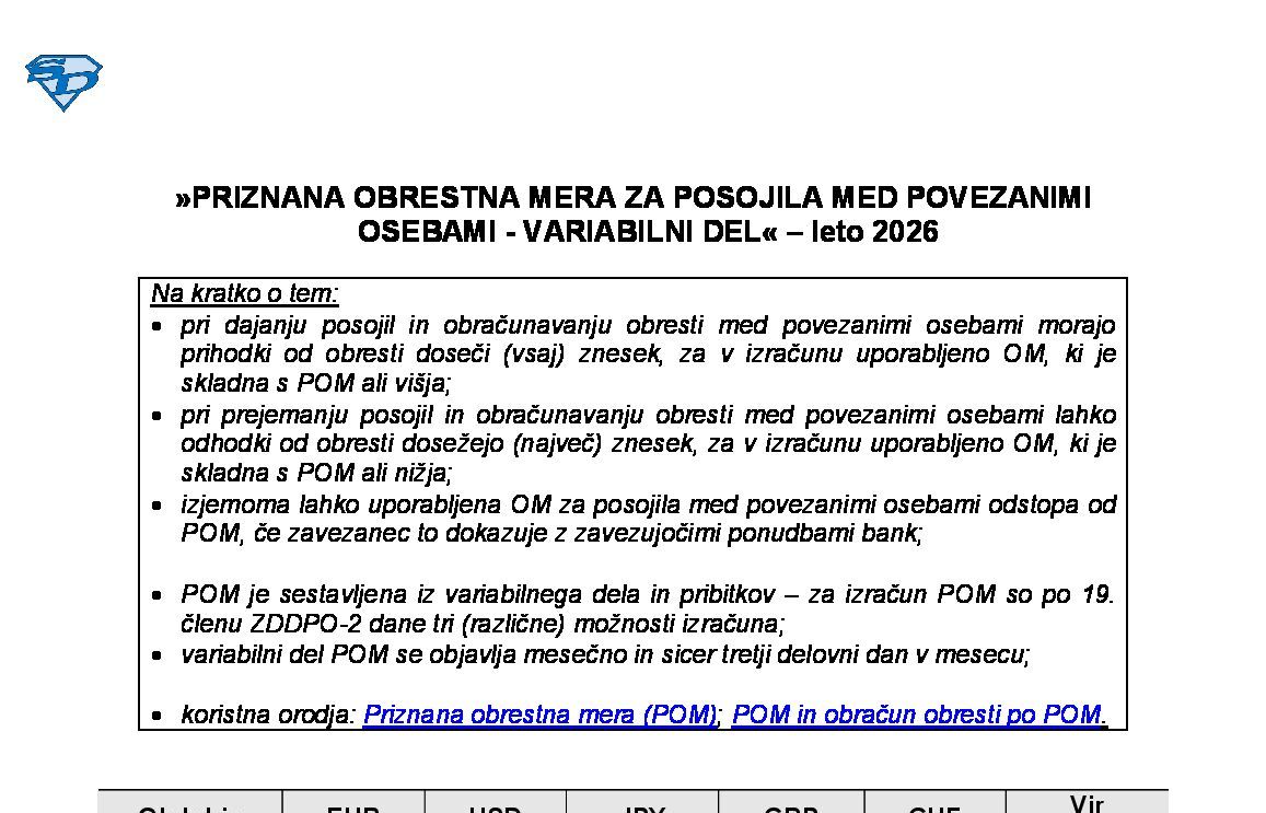 PRIZNANA OBRESTNA MERA ZA POSOJILA MED POVEZANIMI OSEBAMI - VARIABILNI DEL – leto 2025 03.12.2025