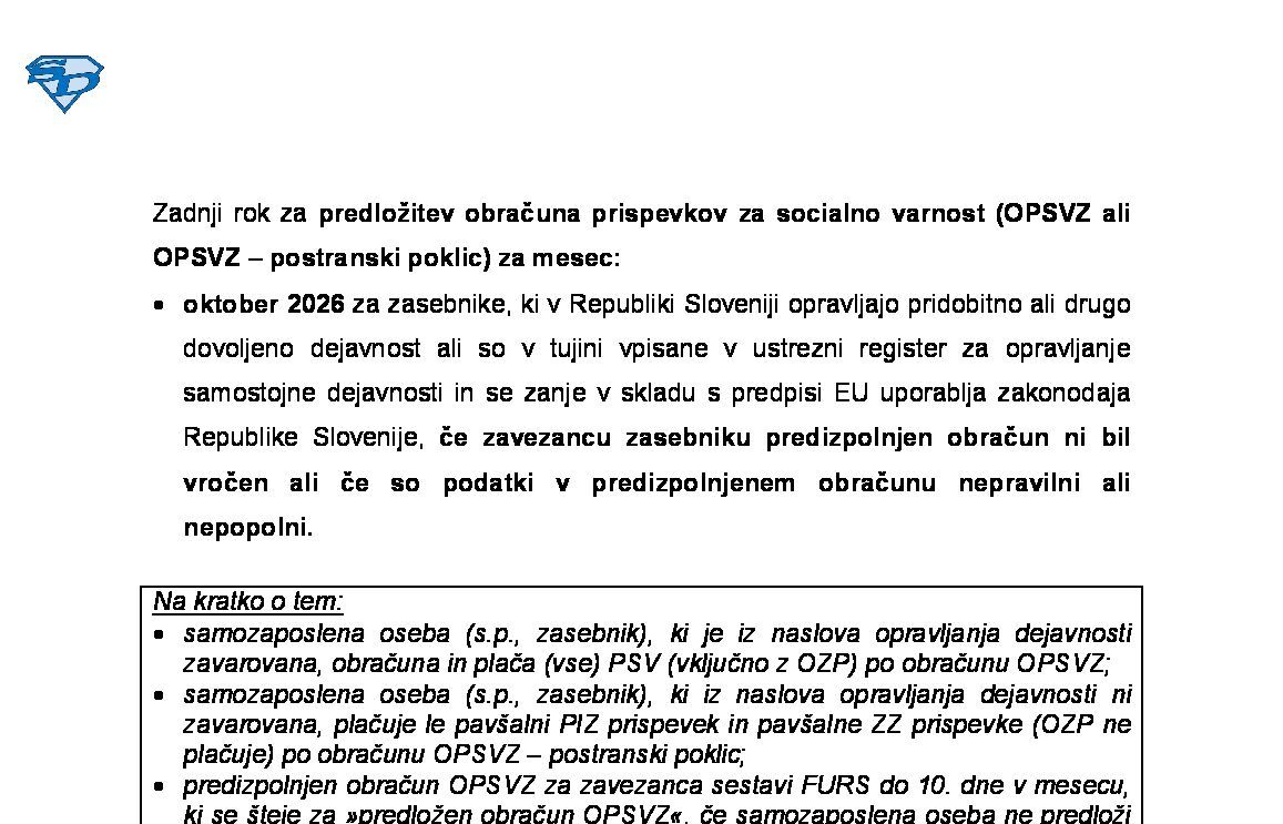 Plačilo prispevkov za socialno varnost zasebnika (PSV zasebniki) 2026-11-20 00:00:00