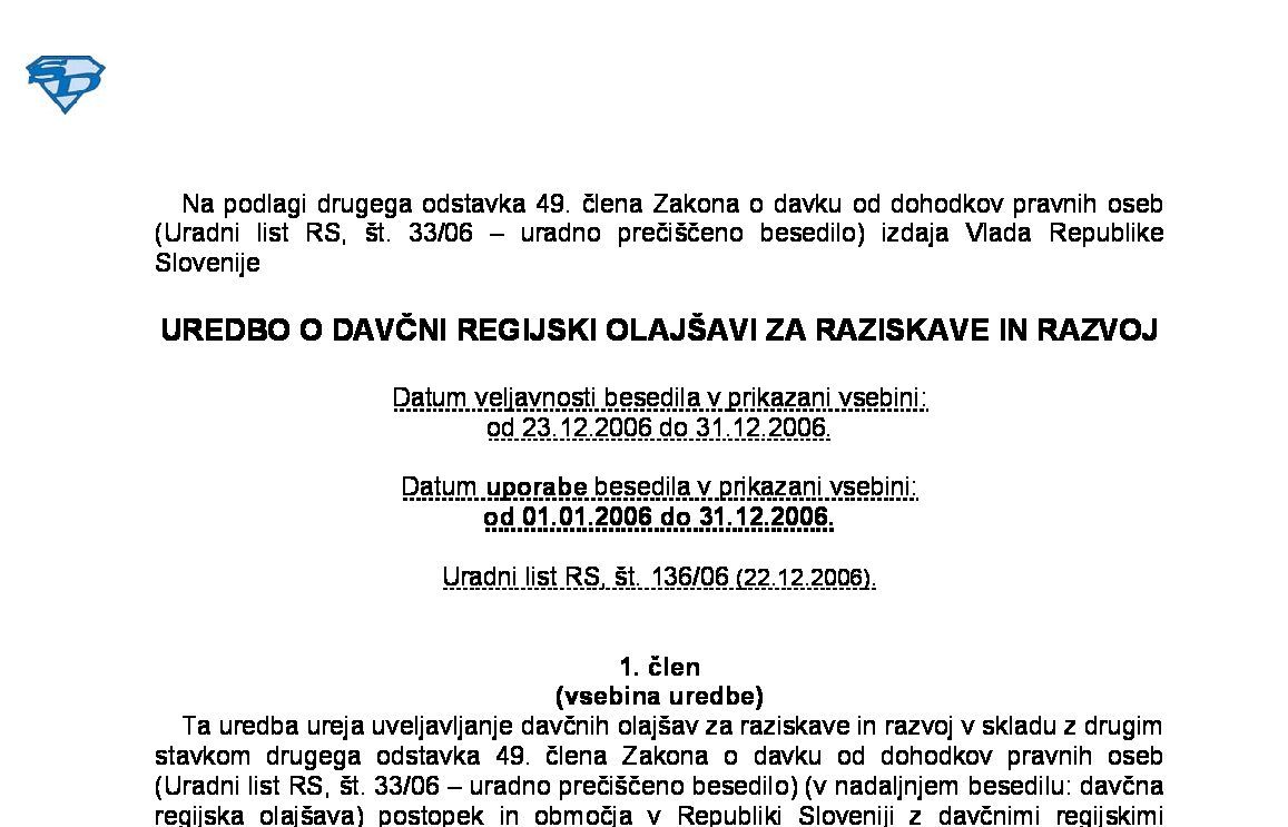 Čeprav je datum veljavnosti Uredbe 23.12.2006, se Uredba iz vsebinskega zornega kota uporablja za obdobje od 01.01.2006 do 31.12.2006.