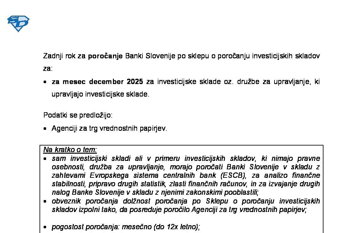 Poročanje Banki Slovenije - poročilo gospodarskih družb, ki izvajajo poslovno dejavnost najema, zakupa ali lizinga 2026-01-16 00:00:00