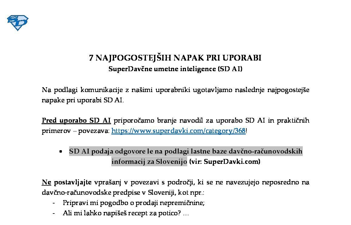 Praktični primer uporabe SD AI št. 3 - Zaprosite SuperDavčno AI, naj vam pomaga določiti parametre za postavitev vprašanja 27.10.2025