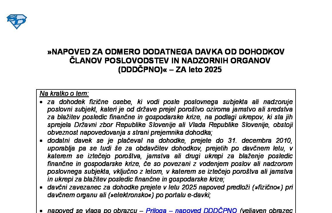 NAPOVED ZA ODMERO AKONTACIJE DOHODNINE OD DRUGIH DOHODKOV ZA REZIDENTE – v letu 2026 02.02.2026