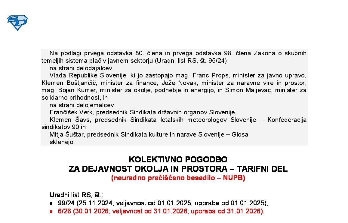 32.0 KOLEKTIVNA POGODBA ZA DRŽAVNO UPRAVO, UPRAVE PRAVOSODNIH ORGANOV IN UPRAVE SAMOUPRAVNIH LOKALNIH SKUPNOSTI - TARIFNI DEL 31.01.2026 09.02.2026