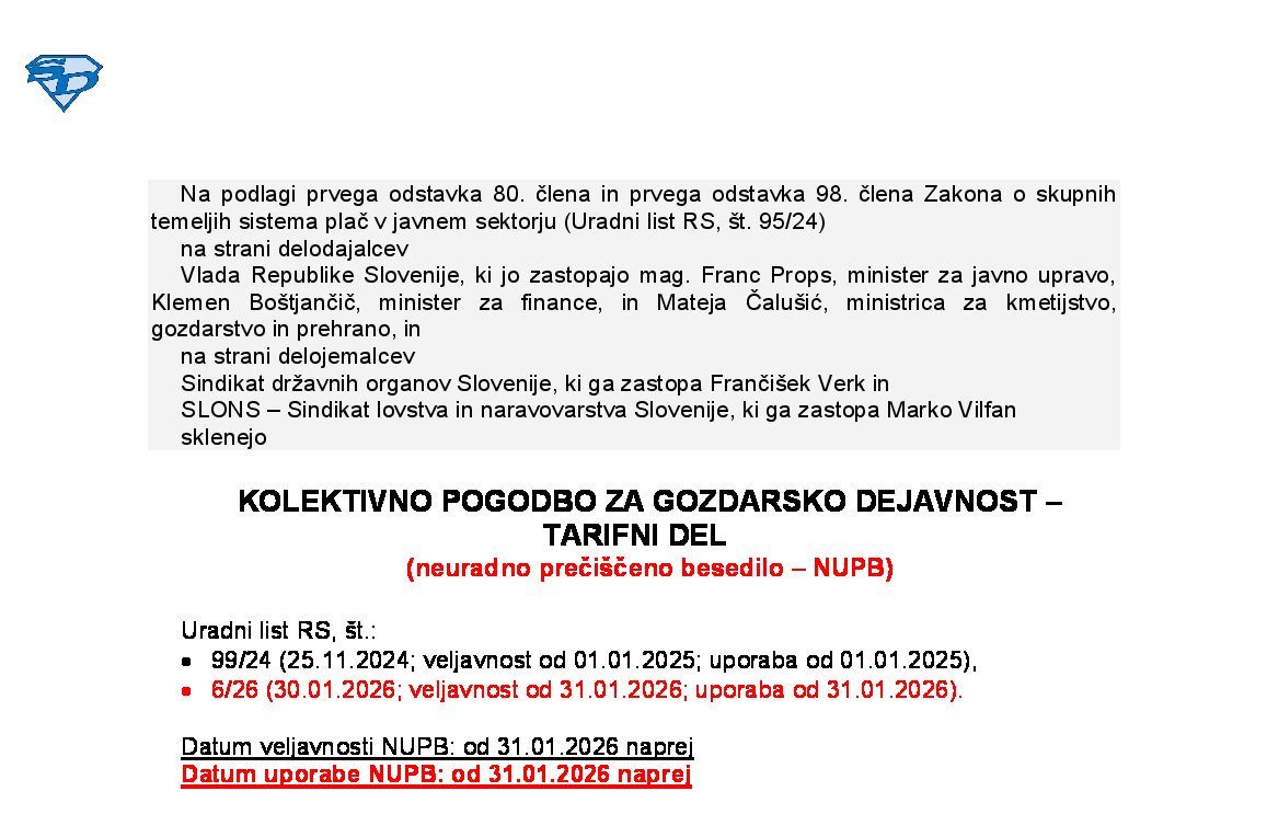 37.0 KOLEKTIVNA POGODBA ZA DEJAVNOST OBVEZNE SOCIALNE VARNOSTI - TARIFNI DEL 31.01.2026 09.02.2026