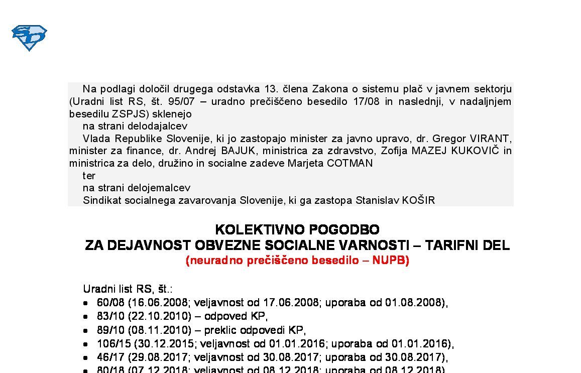32.0 KOLEKTIVNA POGODBA ZA DRŽAVNO UPRAVO, UPRAVE PRAVOSODNIH ORGANOV IN UPRAVE SAMOUPRAVNIH LOKALNIH SKUPNOSTI - TARIFNI DEL 31.01.2026 09.02.2026