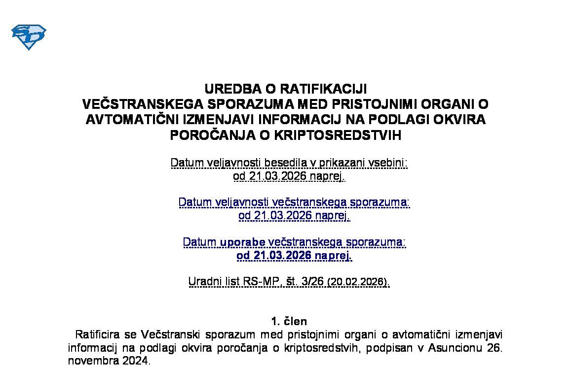 VEČSTRANSKI SPORAZUM MED PRISTOJNIMI ORGANI O AVTOMATIČNI IZMENJAVI INFORMACIJ O FINANČNIH RAČUNIH (NUPB - neuradno prečiščeno besedilo) 21.02.2026 [!] 04.03.2026