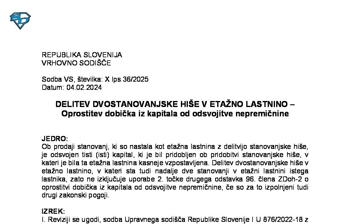 DELNI PRENOS PODJETJA ZASEBNIKA – Posebna davčna obravnava in prenehanjenadaljevanje opravljanja dejavnosti (starega) zasebnika (X Ips 22/2019) 04.12.2019 11.12.2025
