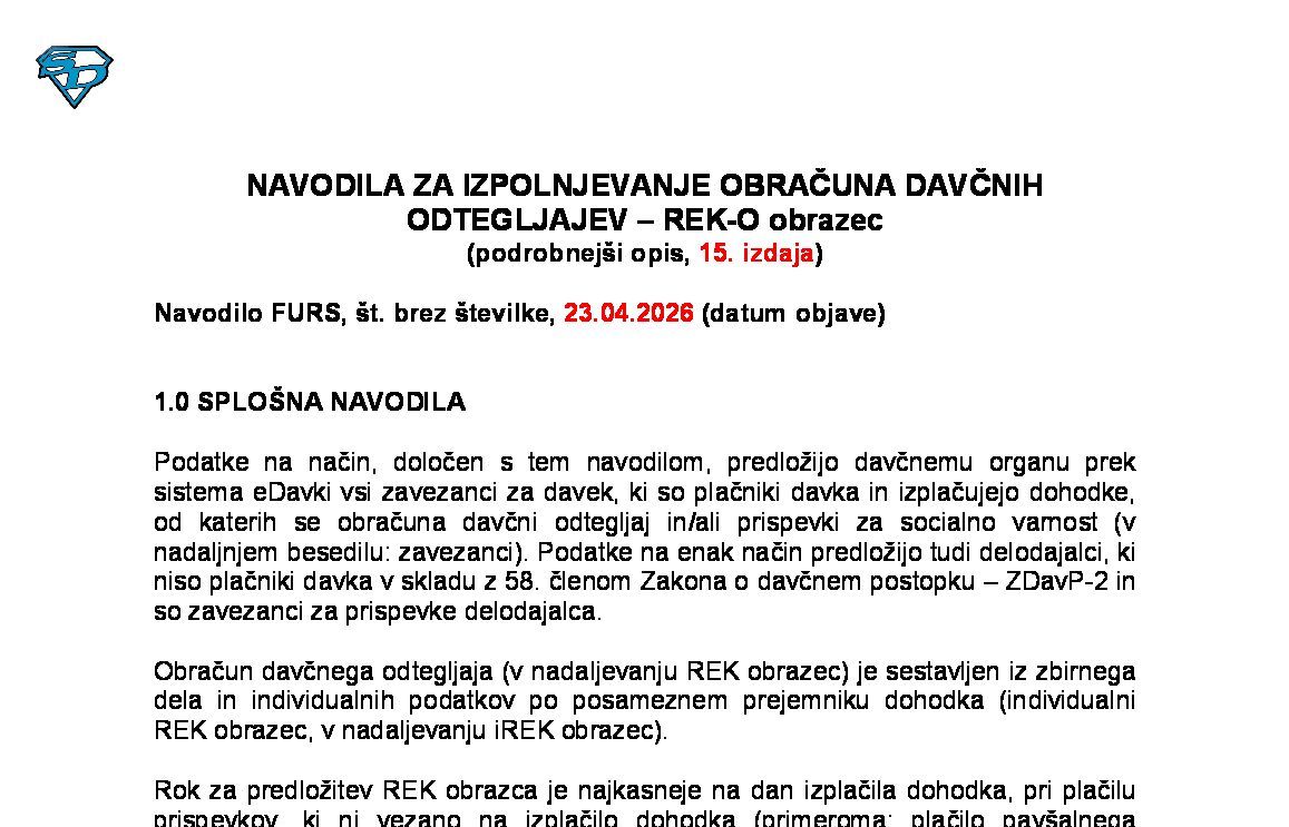 POVZETEK OBRAČUNA DOHODKOV ZA REZIDENTE IN NEREZIDENTE RS – Izgled in vsebina obvestila za prejemnike na letni ravni (1. izdaja) 15.04.2026 16.04.2026