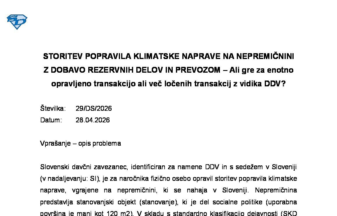 PRAVICA DO ODBITKA DDV NA PODLAGI POPRAVLJENEGA RAČUNA V PRIMERU NAKNADNE IDENTIFIKACIJE DOBAVITELJA ZA NAMENE DDV ZARADI PRESEŽENEGA PRAGA LETNEGA PROMETA NA OZEMLJU SLOVENIJE 17.04.2026 17.04.2026