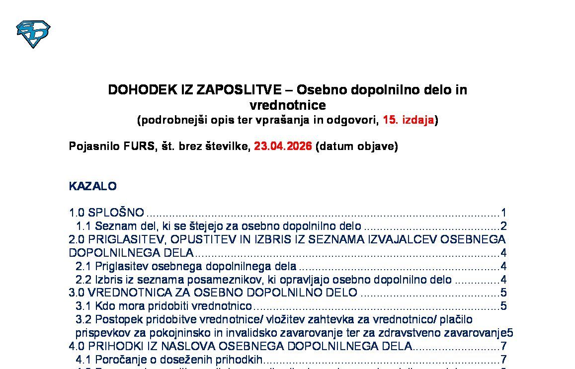 DOHODEK IZ ZAPOSLITVE – Dohodek iz delovnega razmerja (podrobnejši opis ter vprašanja in odgovori, 22. izdaja) 31.03.2026 08.04.2026