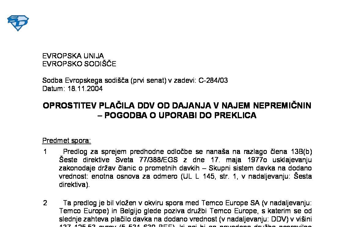 OPROSTITEV V ZVEZI Z DAJANJEM KREDITOV – OPROSTITEV V ZVEZI S FINANČNIMI TRANSAKCIJAMI – IZTERJAVA DOLGOV – Faktoring s prodajo terjatev – Faktoring z zastavno pravico (C-332/24) 23.10.2025 28.10.2025