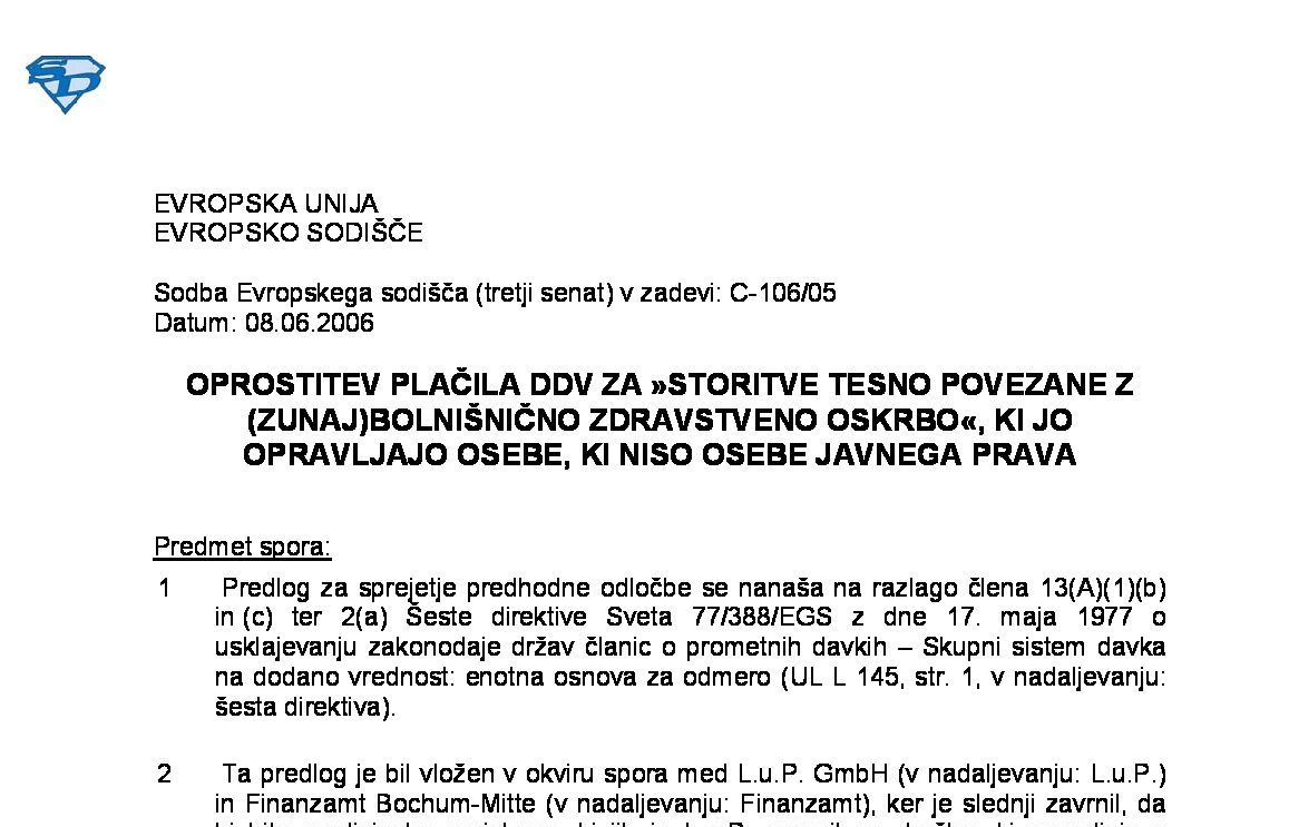 OPROSTITEV V ZVEZI Z DAJANJEM KREDITOV – OPROSTITEV V ZVEZI S FINANČNIMI TRANSAKCIJAMI – IZTERJAVA DOLGOV – Faktoring s prodajo terjatev – Faktoring z zastavno pravico (C-332/24) 23.10.2025 28.10.2025