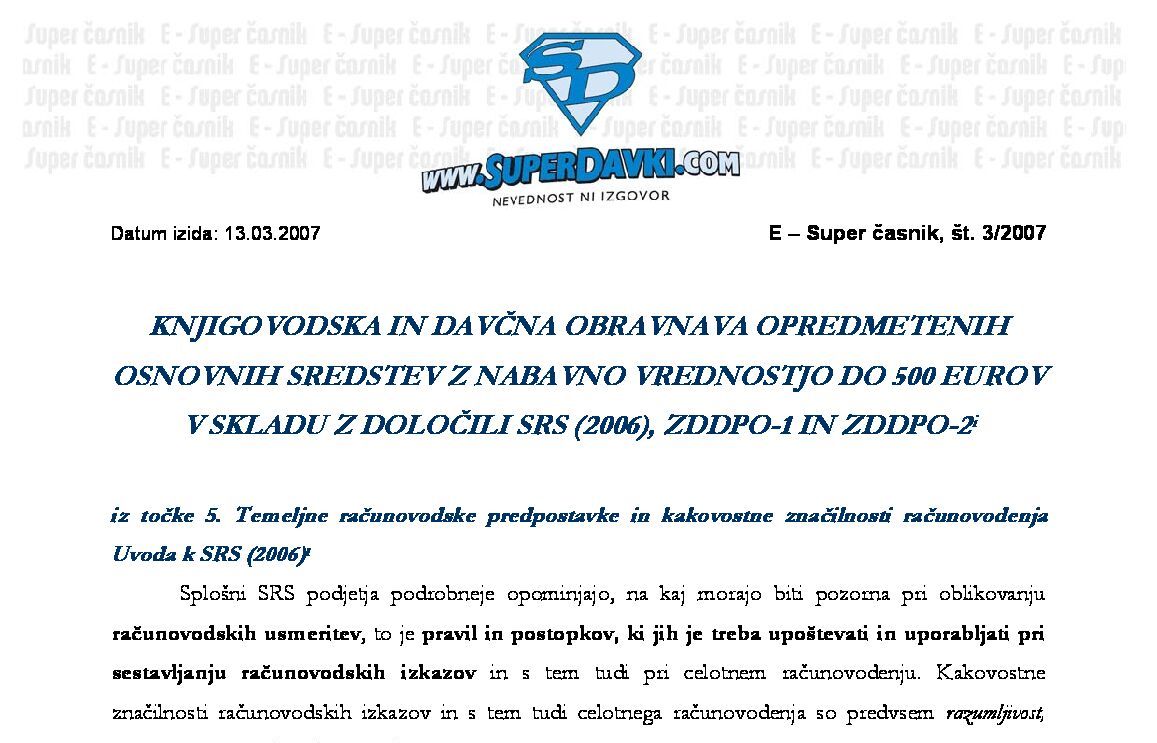 PREVREDNOTENJE IN ODPISI TERJATEV - VIDIK ZDDPO-2, SRS (2006) IN ZDDV-1, številka 06-07 31.12.2007