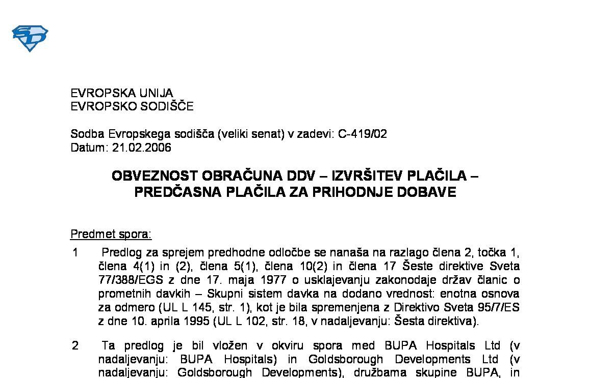 VRAČILO DDV DAVČNIM ZAVEZANCEM, KI NIMAJO SEDEŽA V DRŽAVI ČLANICI VRAČILA – GLAVNA IN POMOŽNA STORITEV – UMETNA DELITEV ENOTNE STORITVE – Neobstoj premestitve predmeta dobave (C-234/24) 23.10.2025 24.10.2025
