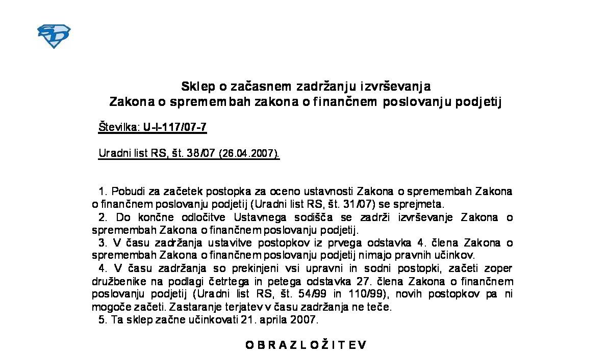 ZAKON O FINANČNEM POSLOVANJU PODJETIJ (ZFPPod - neuradno prečiščeno besedilo) 28.04.2007 [!] 14.01.2008 30.04.2007