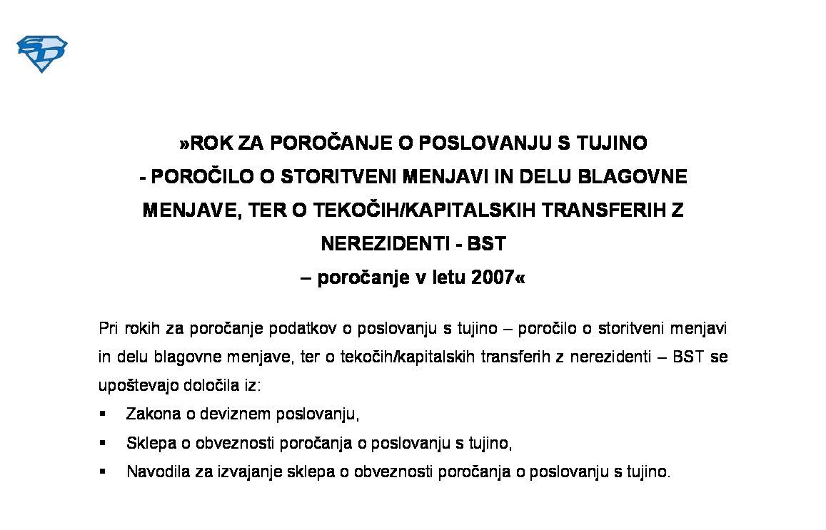 POROČANJE BANKI SLOVENIJE - MESEČNO POROČILO O KAPITALSKIH NALOŽBAH MED REZIDENTI IN NEREZIDENTI - TRANSAKCIJE (poročilo SN-T) - poročanje v letu 2025 13.12.2024