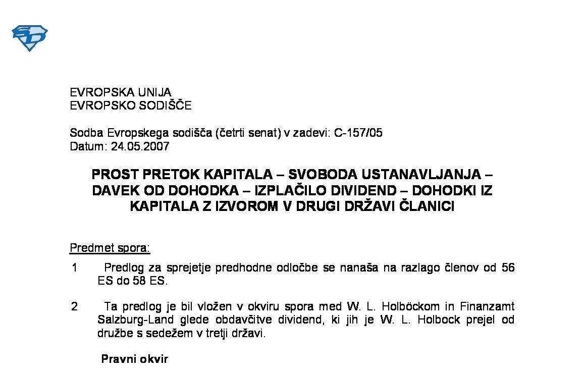 DOHODNINA – IZRAČUN OSNOVNEGA OSEBNEGA ODBITKA ZA VZDRŽEVANEGA OTROKA, KI JE PREJEL POMOČ ZA UČNO MOBILNOST V OKVIRU PROGRAMA ERAZMUS+ – Obdavčitev štipendij za olajšanje mobilnosti fizičnih oseb, na katere se nanaša ta uredba – Omejitev prostega gibanja – Sorazmernost (C-277/23) 16.01.2025 17.01.2025