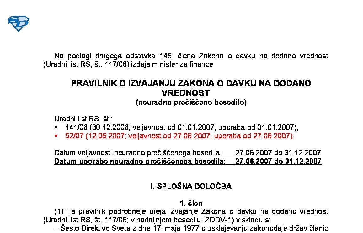 Pravilnik o izvajanju Zakona o davku na dodano vrednost (PZDDV - neuradno prečiščeno besedilo) 01.01.2025 [!] 30.12.2024