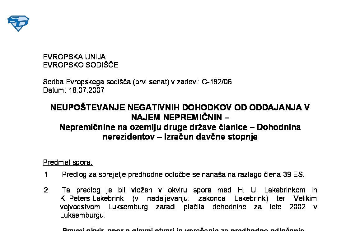 DELAVEC IZ DRŽAVE ČLANICE, KI JE PRENESEL SVOJE STALNO PREBIVALIŠČE V ŠVICO – Davčne ugodnosti – Omejitev na omejeno obdavčljive delavce, ki so rezidenti države članice ali države pogodbenice Sporazuma o EGP – Enako obravnavanje (C-627/22) 30.05.2024 31.05.2024