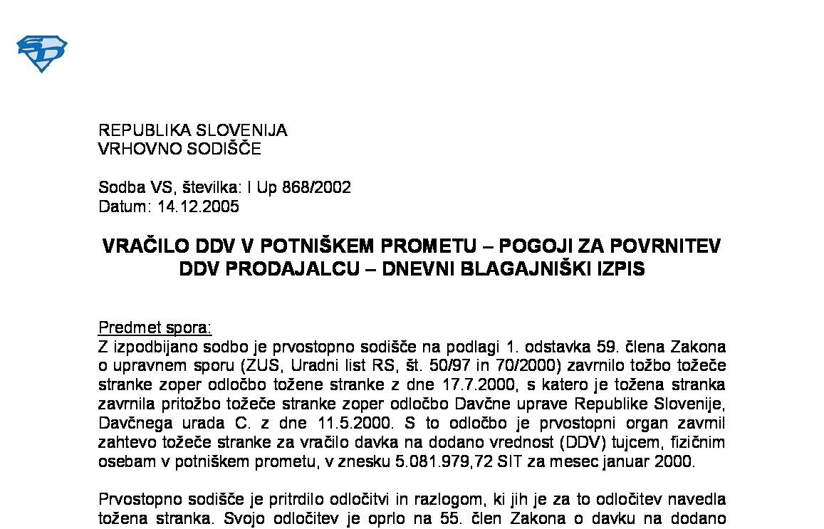 IZDANI RAČUNI ZA OPRAVLJENE POSLOVODNE STORITVE Z OBRAČUNANIM DDV – Pravica do odbitka DDV – Načelo nevtralnosti (X Ips 41/2023) 24.03.2025 28.08.2025