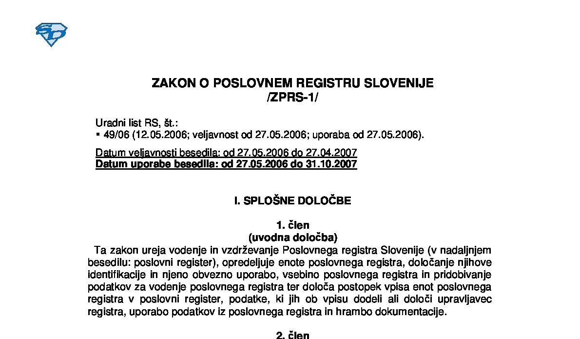 ZAKON O POSLOVNEM REGISTRU SLOVENIJE (ZPRS-2) 21.11.2027 [!] 07.11.2025