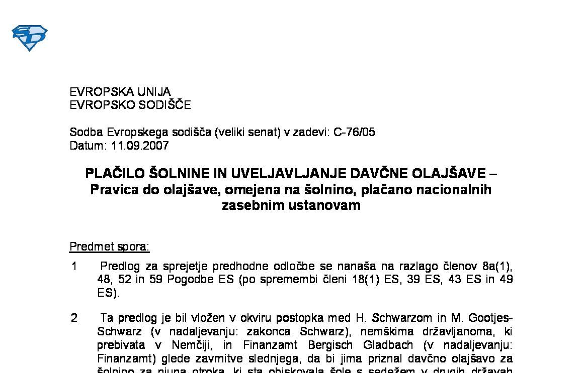 DOHODNINA – IZRAČUN OSNOVNEGA OSEBNEGA ODBITKA ZA VZDRŽEVANEGA OTROKA, KI JE PREJEL POMOČ ZA UČNO MOBILNOST V OKVIRU PROGRAMA ERAZMUS+ – Obdavčitev štipendij za olajšanje mobilnosti fizičnih oseb, na katere se nanaša ta uredba – Omejitev prostega gibanja – Sorazmernost (C-277/23) 16.01.2025 17.01.2025
