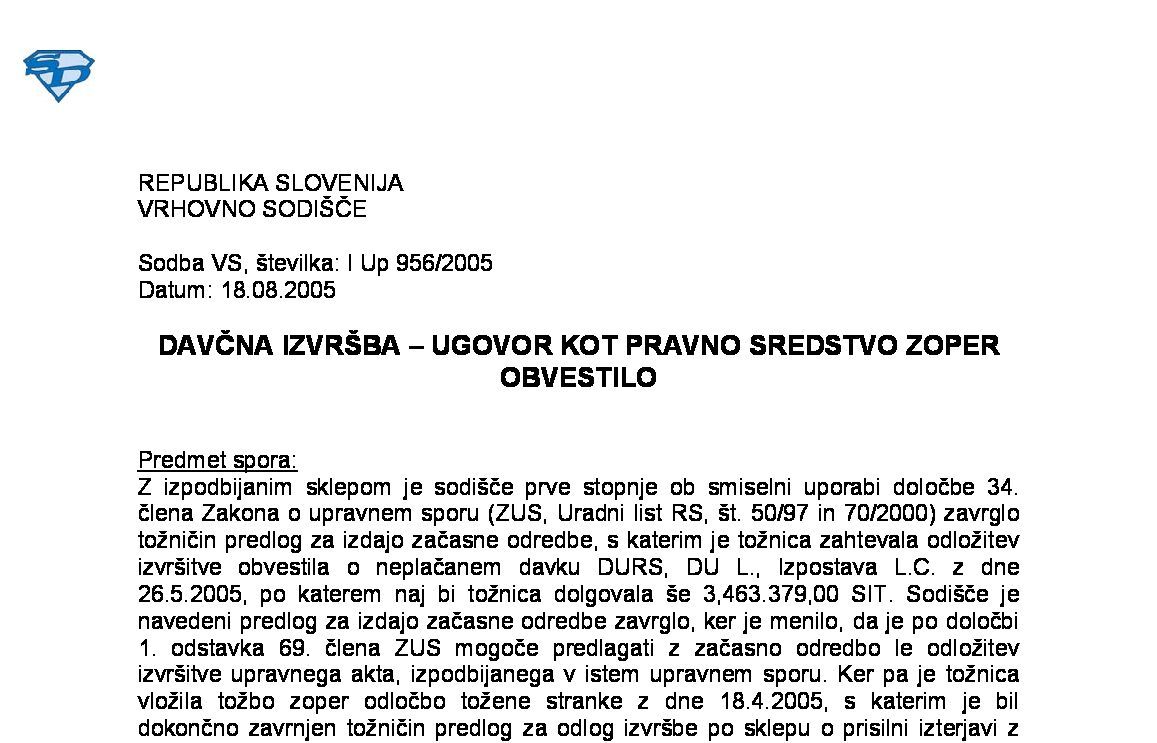 ODLOG UGOTAVLJANJA DAVČNE OBVEZNOSTI – Samoprijava (X Ips 31/2023) 02.10.2024 06.11.2024