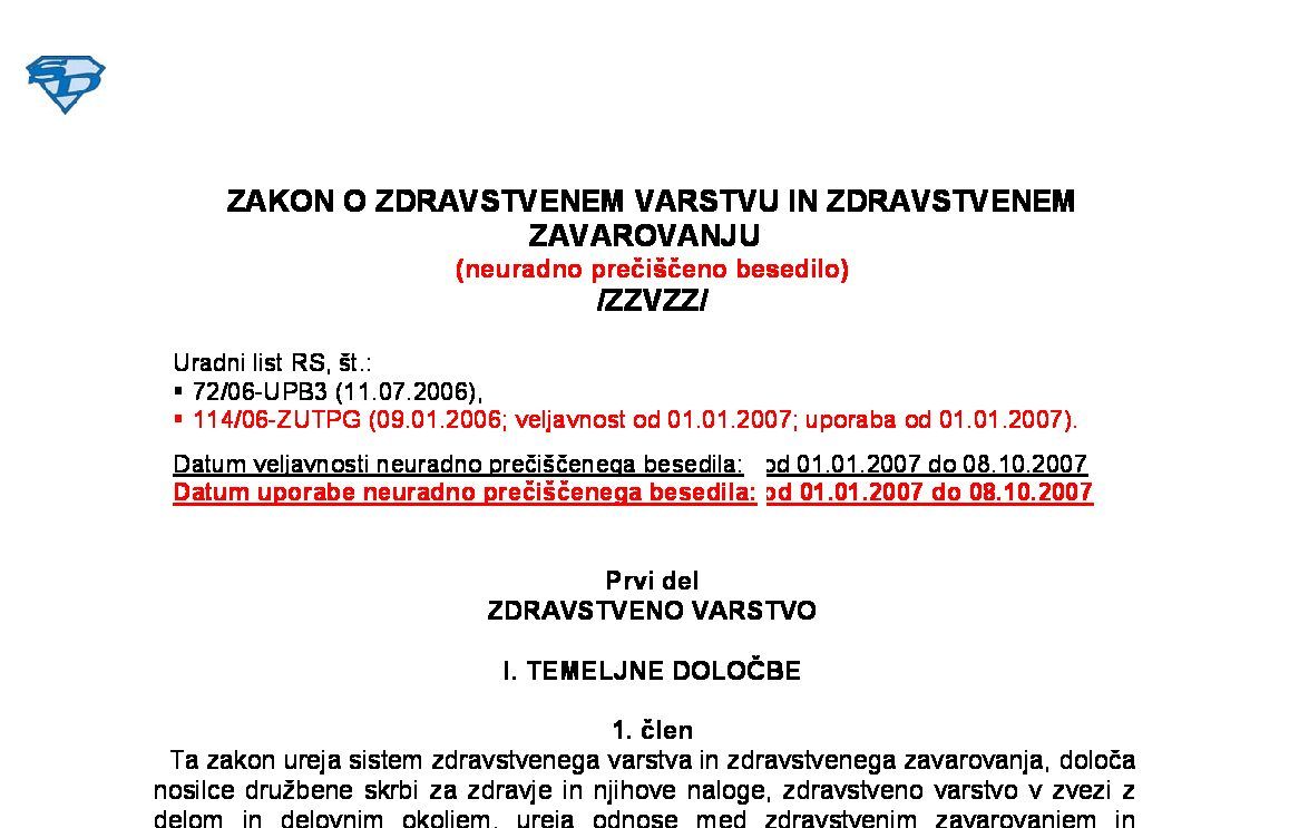 ZAKON O ZDRAVSTVENEM VARSTVU IN ZDRAVSTVENEM ZAVAROVANJU (ZZVZZ - neuradno prečiščeno besedilo) 21.05.2025 13.05.2025