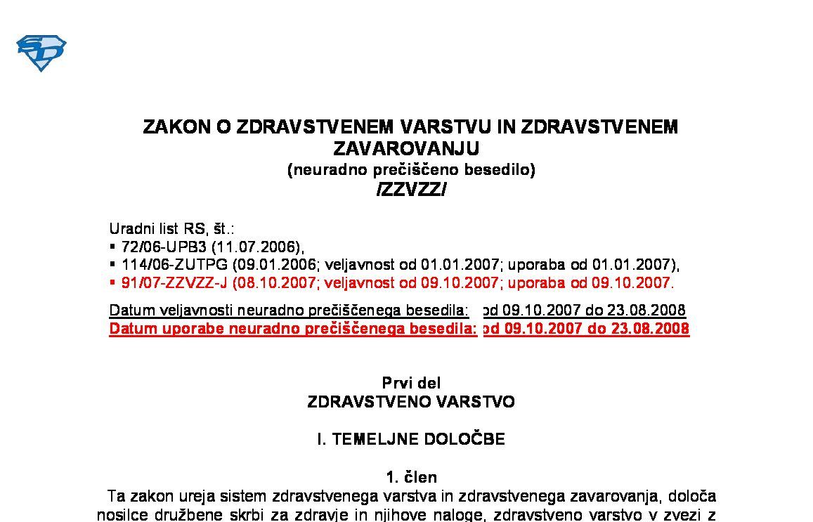 ZAKON O ZDRAVSTVENEM VARSTVU IN ZDRAVSTVENEM ZAVAROVANJU (ZZVZZ - neuradno prečiščeno besedilo) 08.11.2022 [!] 31.12.2023 16.11.2022