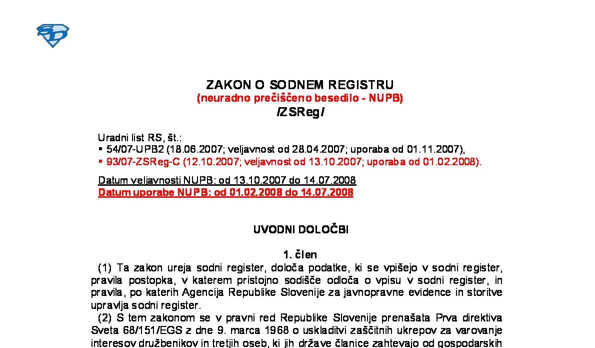 Uredba o sodnem registru (NUPB - neuradno prečiščeno besedilo) 10.08.2024 [!] 01.08.2024