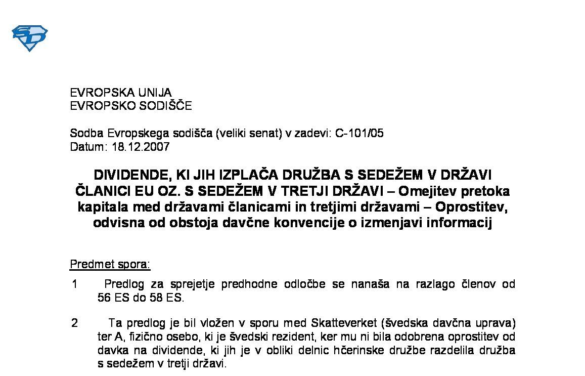 DOHODNINA – IZRAČUN OSNOVNEGA OSEBNEGA ODBITKA ZA VZDRŽEVANEGA OTROKA, KI JE PREJEL POMOČ ZA UČNO MOBILNOST V OKVIRU PROGRAMA ERAZMUS+ – Obdavčitev štipendij za olajšanje mobilnosti fizičnih oseb, na katere se nanaša ta uredba – Omejitev prostega gibanja – Sorazmernost (C-277/23) 16.01.2025 17.01.2025